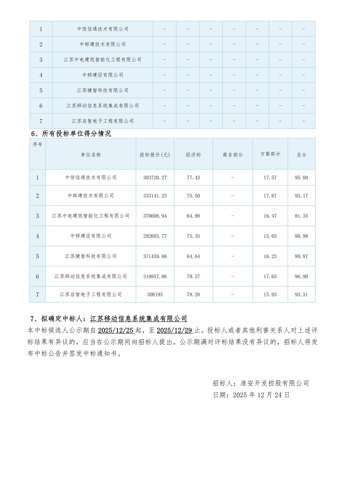中標(biāo)候選人公示
